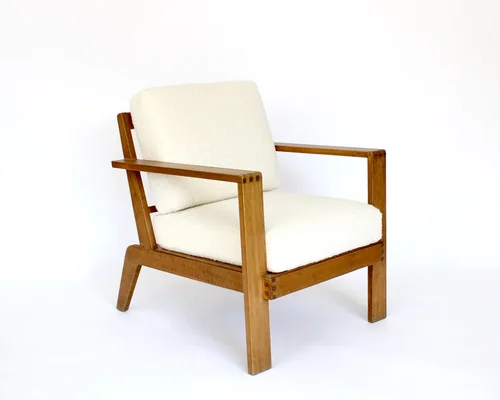 Rene Gabriel French Oak Wood Lounge Chair