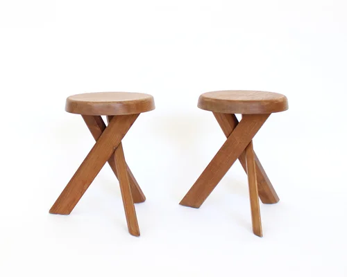 Pierre Chapo Stools Tabourets Pair S31 Elm France c1974 Vintage
